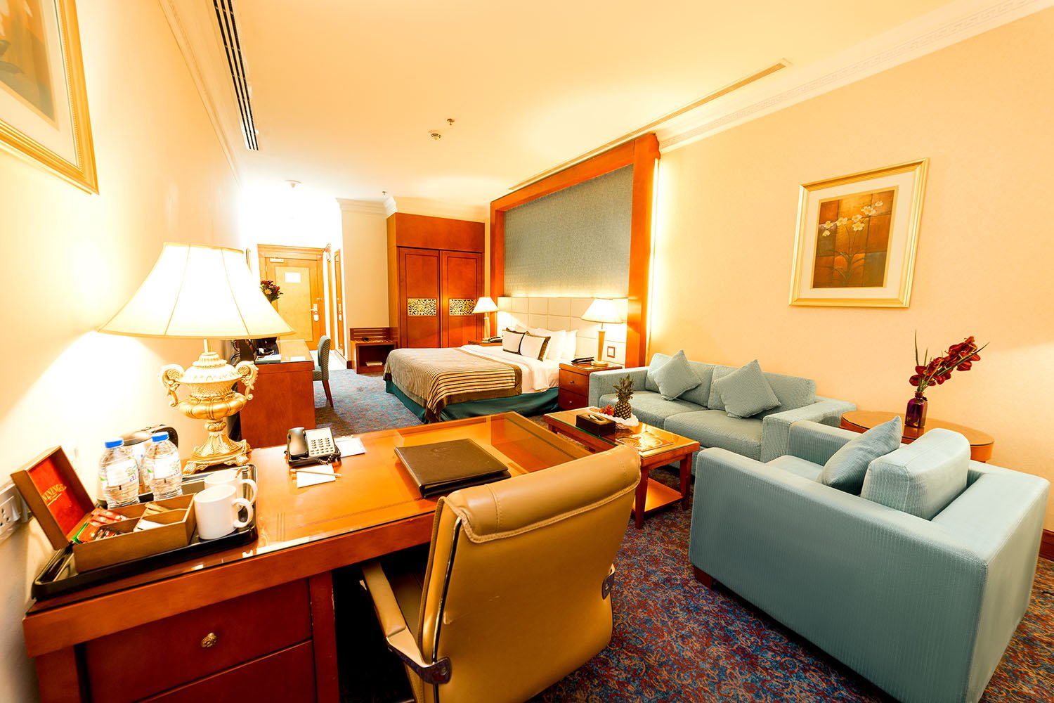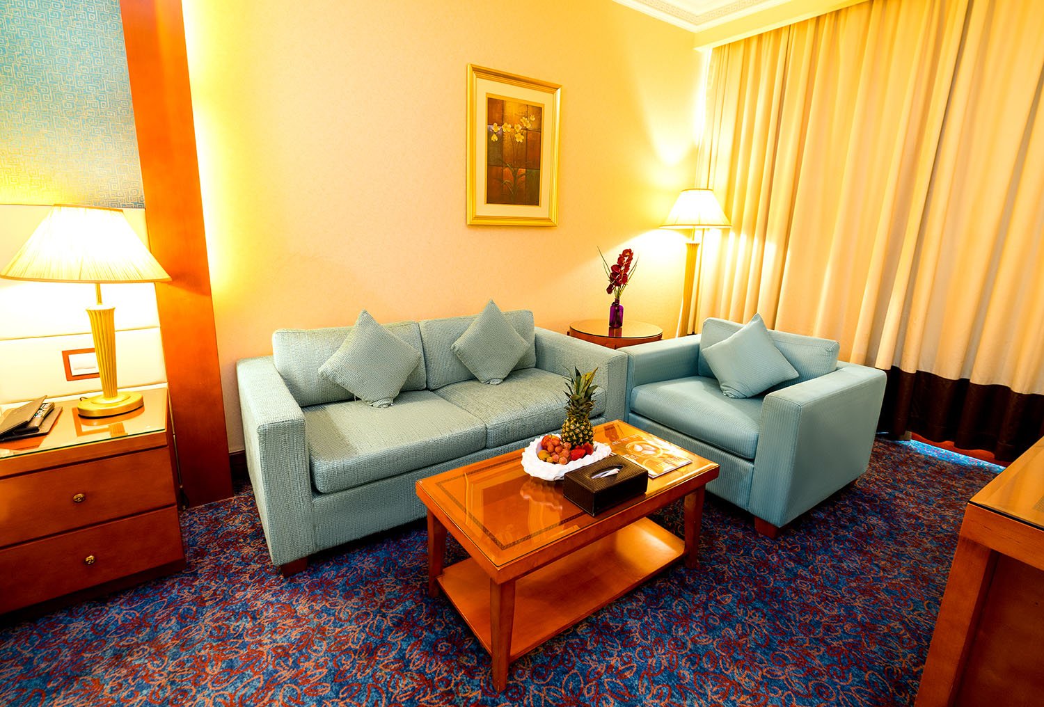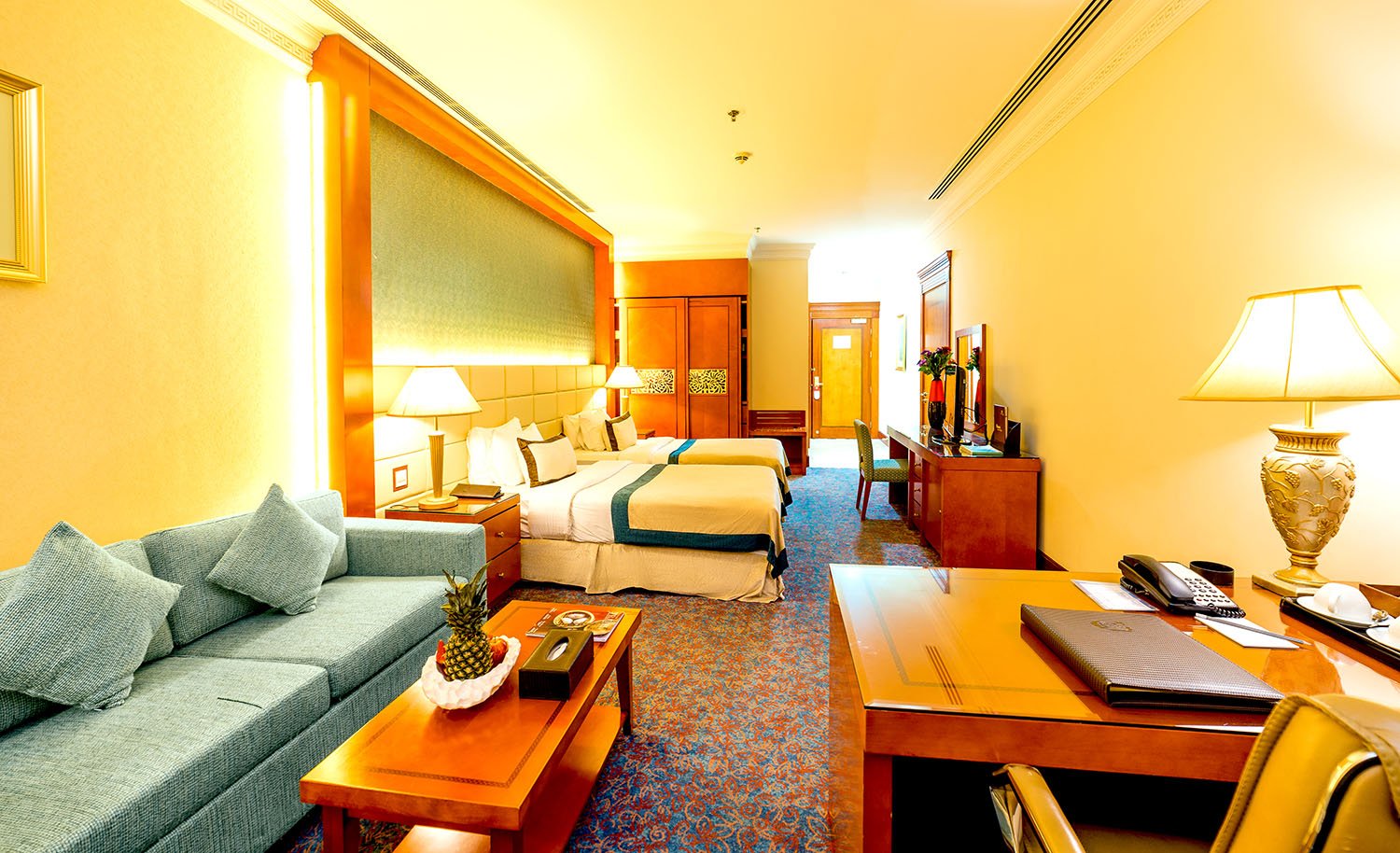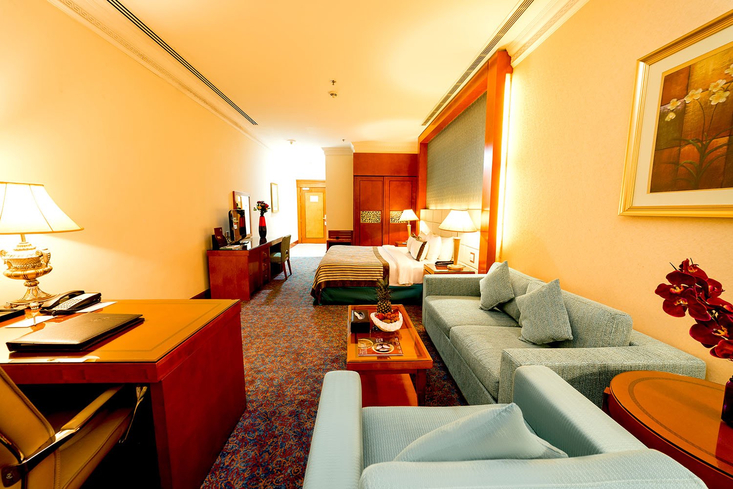 Overlooking the city and flooded with natural light, all Deluxe Rooms at our 4 Star Hotel in Al Barsha Dubai offer one king-size or two single-size beds. With its contemporary décor and spacious layout, these Hotel Rooms in Al Barsha Dubai provide the perfect blend of comfort and elegance, offering a genuine home-away-from-home feel. Perfect for families seeking extra space for their leisure visit to Dubai or for business visitors with the added benefit of a comfortable desk, these rooms boast 40sqm of space cleverly divided into a cozy lounge area with comfortable sofas and a sleeping area featuring a showcase headboard.